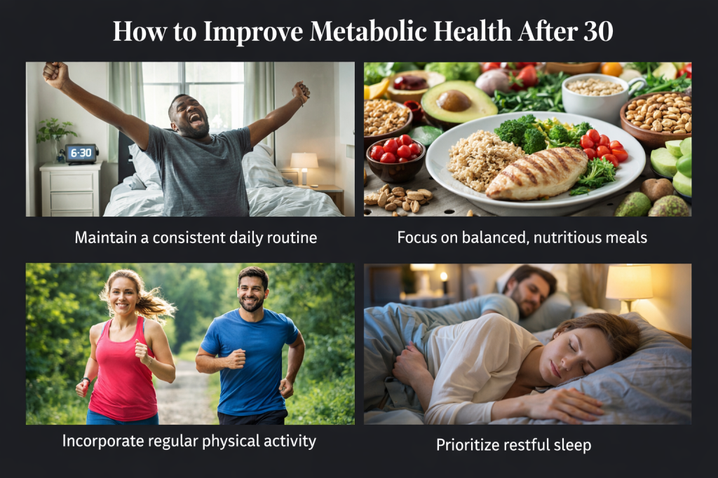 Supporting metabolic health after 30 involves simple, sustainable lifestyle adjustments: